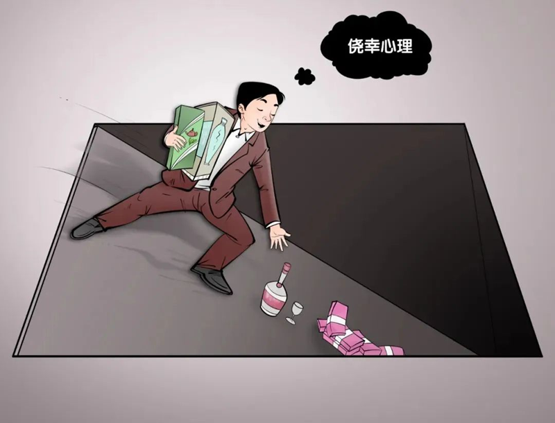 幸运心理危害甚大。敬畏心越强,幸运心理越没有空间;幸运心理越盛,敬畏心便会千疮百孔。幸运心理使人对种种“围猎”的小心性一直下降,对他人的血泪教训无动于衷,对党纪王法的威严不以为然,犹如“温水煮田鸡”,纪法意识淡化与拒腐堤坝失守相互叠加,最终在幸运驱使下身陷囹圄。幸运是贪欲的催化剂,贪心的胃口不是一天变大的,从收受红包礼金时的惴惴担心,到收受巨额行贿时的贪得无厌,贪欲的“潘多拉魔盒”逐步被翻开的历程,正是幸运心理推波助澜的效果。幸运心理将饮鸩止渴之举蒙上滤镜,使人欲壑难填,直至如漫溢之水,滔滔难遏。在目今反糜烂高压态势下,伸手者无不怕,也深知其行为见不得光,但因暂时未被揪出,幸运心理便会营造“海不扬波”的假象,令其继续不收敛、不收手,不向组织坦率,从而越陷越深、不可自拔。