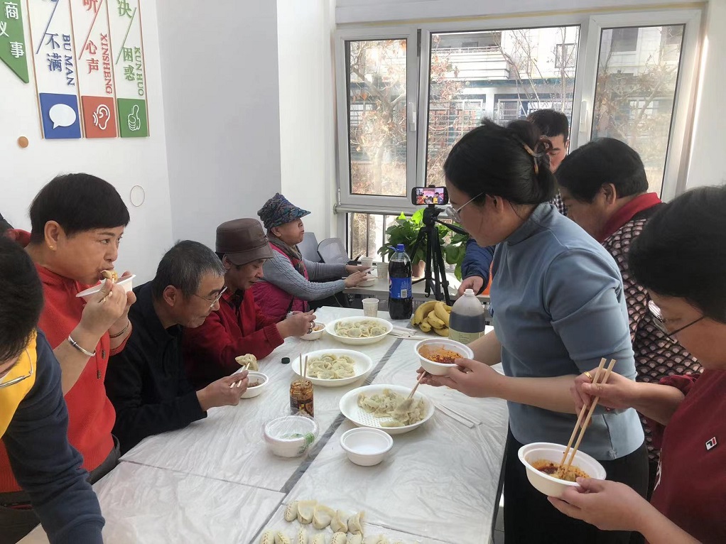运动中 ,11名住民群众、社区事情职员和集团公司自愿者们一起切菜剁馅 ,一起包饺子、煮饺子 ,忙得不亦乐乎 。当热腾腾的饺子端上桌 ,各人围桌而坐 ,共享香馥馥的饺子 ,感受着浓重的节日气氛 。