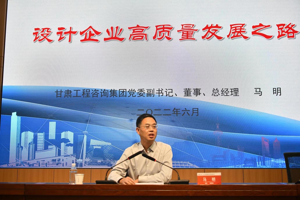 6月9日,在甘肃省修建设计研究院有限公司喜迎建院70周年华诞之际,集团公司党委副书记、总司理马明受邀以《设计企业高质量生长之路》为题作专题讲座。集团公司司理层成员、各部分主要认真人及兄弟单位主要向导,修建设计院向导班子成员、全体中层干部聆听讲座。