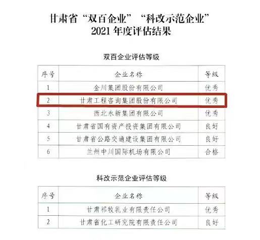 甘肃OG真人官方集团获甘肃省2021年度“双百企业”评估“优异”品级