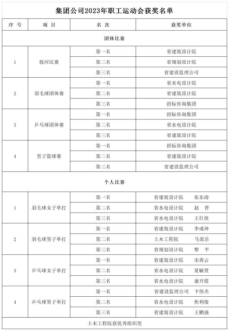(乒乓球整体赛一、二、三等奖)