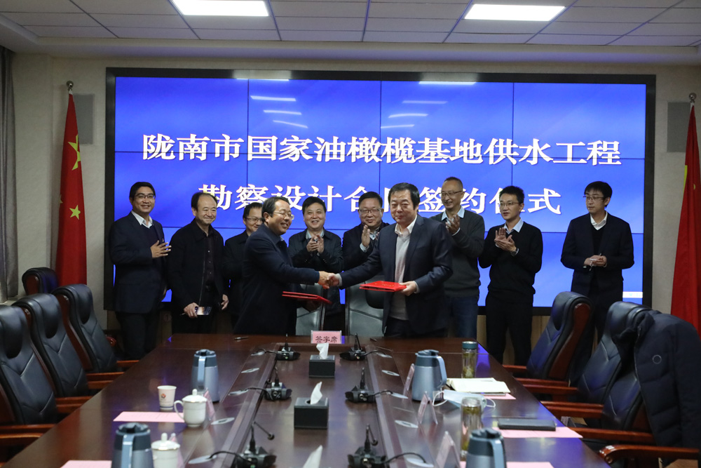11月19日,水电设计院与陇南市水务局举行陇南国家油橄榄基地供水工程勘探设计条约签约仪式,水电设计院党委副书记、总司理陈剑,陇南市龙嘉水投公司董事长王平代表双方签约。水电设计院党委书记、董事长朱发昇,陇南市水务局局长司宝平、副局长何松居,水电设计院相关向导、生产谋划治理部、工程设计二院认真人及相关职员加入签约仪式。