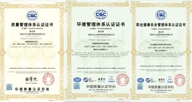 克日,经中国磨练认证集团甘肃有限公司的严酷评审,土木匠程院及子公司“兰州金建工程建设监理有限公司”均顺遂通过了GB/T 50430(工程建设施工企业质量治理系统)、ISO14001(情形治理系统)、ISO45001(职业康健清静治理系统)认证并取得证书。