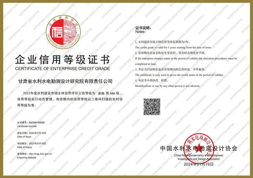 日期: 2024年01月30日|泉源: 甘肃省水利水电勘探设计研究院有限责任公司| 字号:【 |打印