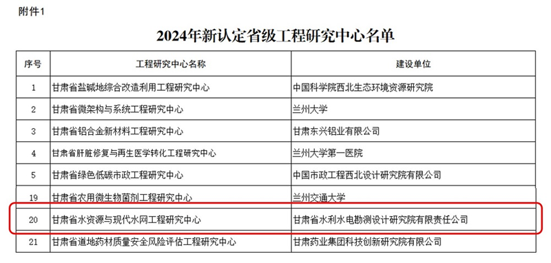 ¿ËÈÕ £¬Ê¡Éú³¤ºÍË¢ÐÂίԱ»áÐû²¼¡¶2024ÄêÐÂÈ϶¨¼°ÓÅ»¯ÕûºÏÊ¡¼¶¹¤³ÌÑо¿ÖÐÐÄÃûµ¥¡· £¬Ê¡Ë®µçÉè¼ÆÔºÉ걨µÄ¡°¸ÊËàʡˮ×ÊÔ´ÓëÏÖ´úË®Íø¡±ÀֳɻñÅúÁ¢Ïî¡°Ê¡¼¶¹¤³ÌÑо¿ÖÐÐÄ¡± £¬±ê¼Ç׏«Ë¾ÔÚË®Àû¹¤³Ì¿ÆÑÐÆ½Ì¨½¨Éè·½ÃæÈ¡µÃÁËÖØ´óÍ»ÆÆ ¡£