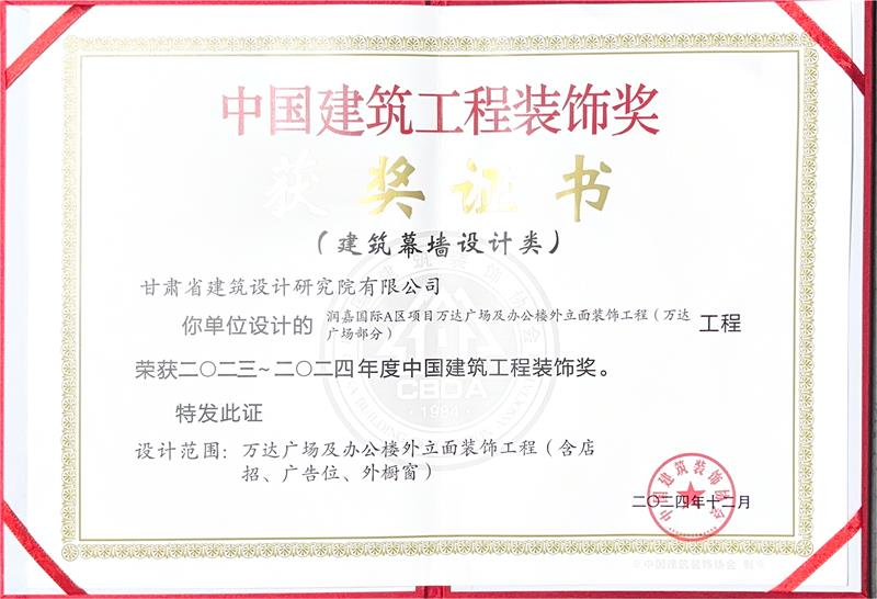 克日,中国修建装饰协会宣布了2023-2024年度“中国修建工程装饰奖”获奖名单,省修建设计院肩负设计的“润嘉国际A区项目万达广场及办公楼外立面装饰工程(万达广场部分)”榜上著名。