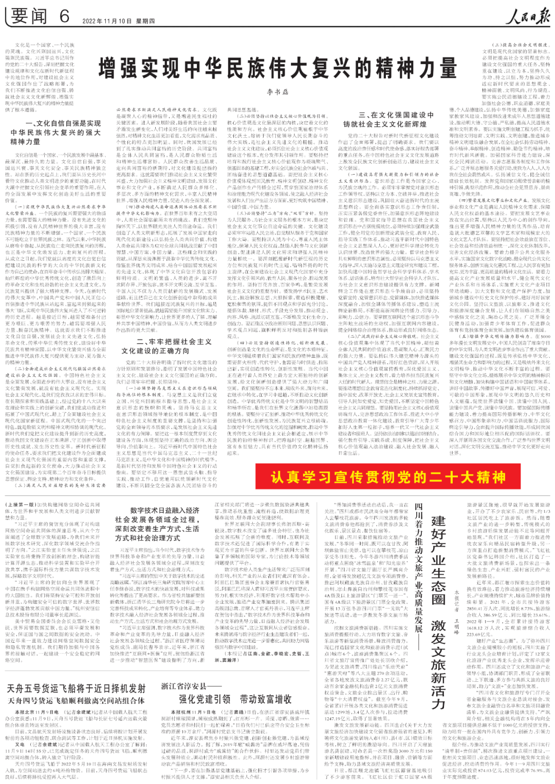 ÎÄ»¯ÊÇÒ»¸ö¹ú¼Ò¡¢Ò»¸öÃñ×åµÄÁé»ê¡£ÎÄ»¯ÐËÔò¹úÔËÐË£¬ÎÄ»¯Ç¿ÔòÃñ×åÇ¿¡£Ï°½üƽ×ÜÊé¼ÇËù×÷µÄµ³µÄ¶þÊ®´ó±¨¸æ£¬Éî¿ÌÕÆÎÕÎÄ»¯½¨Éè¼ÍÂɺÍÎÄ»¯ÔÚÐÂʱ´úÐÂÕ÷³ÌÖеÄְλ×÷Ó㬶Խ¨ÉèÉç»áÖ÷ÒåÎÄ»¯Ç¿¹ú×÷³öÁËÕ½ÂÔ°²ÅÅ£¬ÎªÎÒÃÇÒ»Ö±ÍÆ½øÎÄ»¯×ÔÐÅ×ÔÇ¿¡¢Öý¾ÍÉç»áÖ÷ÒåÎÄ»¯ÐÂѤÀá¢ÔöǿʵÏÖÖлªÃñ×åΰ´óÔÙÆðµÄ¾«ÉñÇéÁ¦ÌṩÁË»ù´¡×ñÕÕ¡£