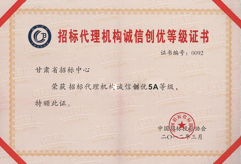招标署理机构诚信创优挂号证书